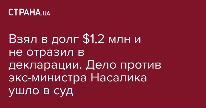 Взял в долг $1,2 млн и не отразил в декларации. Дело против экс-министра Насалика ушло в суд
