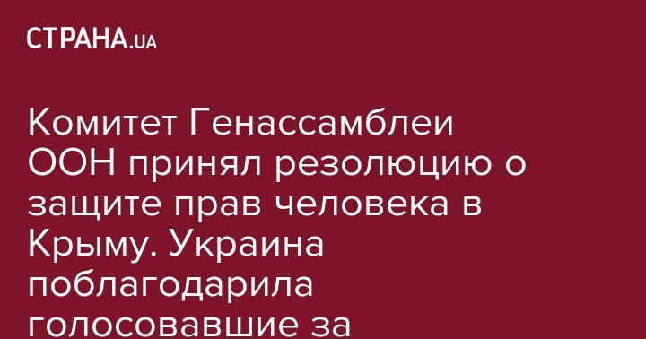 "Украина благодарна странам, которые поддержали проект резолюции на заседании Третьего комитета, и призывает все государства - члены ООН поддержать резолюцию во время голосования на пленарном заседании Генеральной Ассамблеи ООН", - сказано в комментарии.