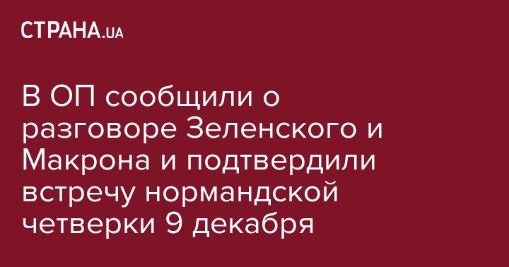 Также в ОП подтвердили, что встреча лидеров Украины, Германии, Франции и России в нормандской формате состоится 9 декабря. Подробности разговора двух лидеров пока не сообщаются.