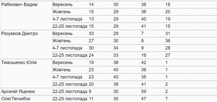Об этом идет речь в исследовании Киевского международного института социологии, которое охватывает три осенних месяца без последих пяти дней ноября.
