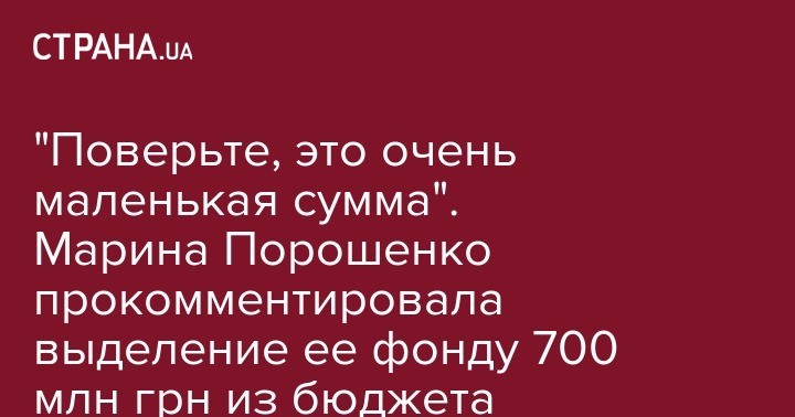 Порошенко заявила, что выделенная сумма не так уж и велика.