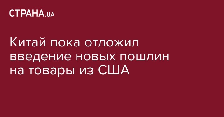 Комитет по таможенным тарифам Госсовета КНР заявил, что введение новых пошлин на импорт товаров из США, которые планировали запустить 15 декабря, откладывается. Об этом сообщает пресс-служба ведомства.