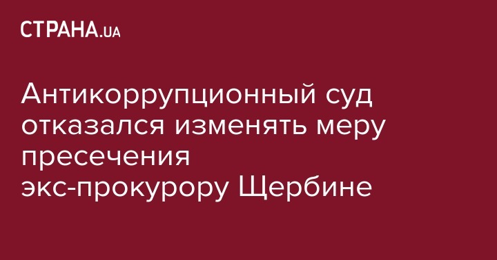 Высший антикоррупционный суд Украины отказал бывшему начальнику Главного следственного управления Генеральной прокуратуры Украины Игорю Щербине, который проходит по делу о вымогательстве взятки с застройщика, в апелляции на меру пресечения. Суд постановил оставить решение антикоррупционного суда без изменений.