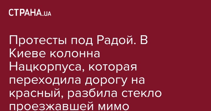 Протесты под Радой. В Киеве колонна Нацкорпуса, которая переходила дорогу на красный, разбила стекло проезжавшей мимо "Тесле"