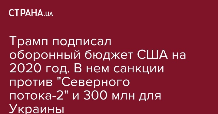 Президент США Дональд Трамп подписал оборонный бюджет на 2020 год. Документ предусматривает помощь для Украины в пределах 300 млн долларов и санкции против России, говорится в заявлении Белого дома.