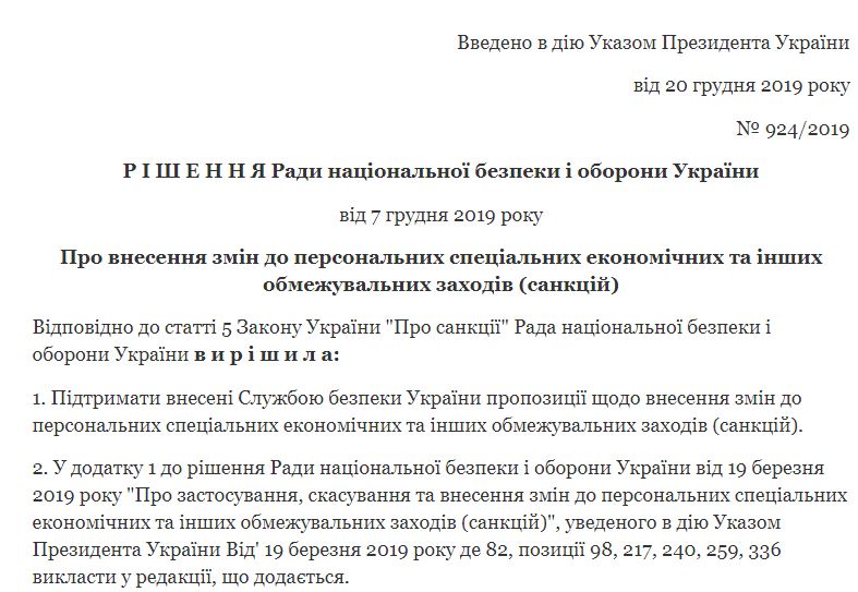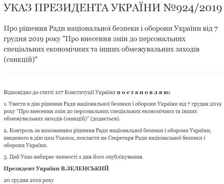 Владимир Зеленский 7 декабря подписал указ "О внесении изменений в персональные специальные экономические и другие ограничительные меры (санкции)".