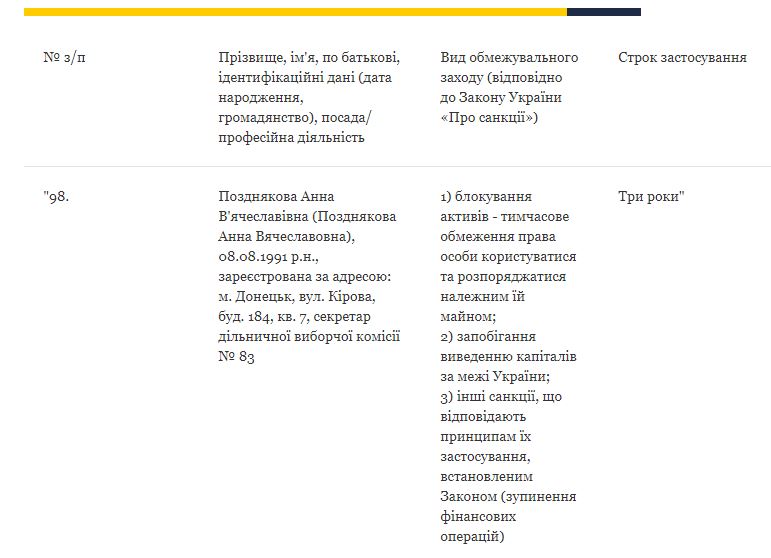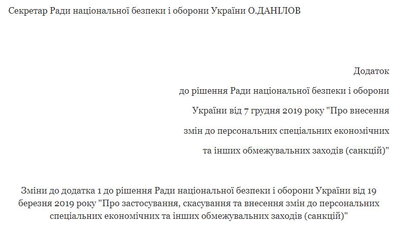 Таким образом, в приложении 1 к решению Совета национальной безопасности и обороны Украины изменены пять лиц, в отношении которых применяются персональные санкции.