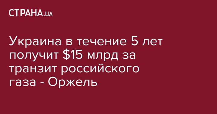 Украина за пять лет транзита российского природного газа получит доход в размере $15 млрд, рассчитывает министр энергетики и защиты окружающей среды Алексей Оржель.