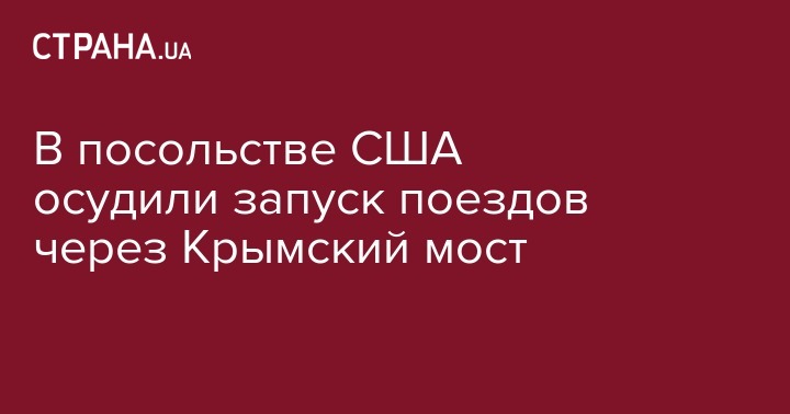В посольстве США осудили запуск властями России железнодорожного пассажирского сообщения через Керченский пролив по Крымскому мосту. Об этом сообщает пресс-служба в твиттер-микроблоге посольства в четверг, 26 декабря.
