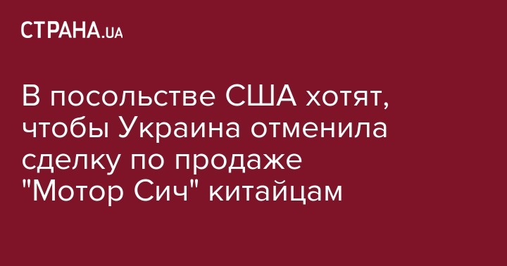В Соединенных Штатах Америки рассчитывают на новую сделку с компанией "Мотор Сич" (Запорожье), которая поможет американского или другого инвестора, чтобы предприятие не продавали китайцам.