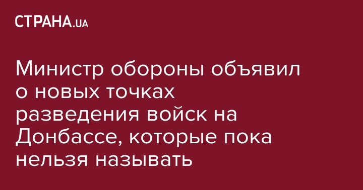 Министр обороны Украины Андрей Загороднюк сказал, что точки разведения войск на Донбассе известны и сейчас обсуждаются в рамках Трехсторонней контактной группы в Минске (ТКГ).