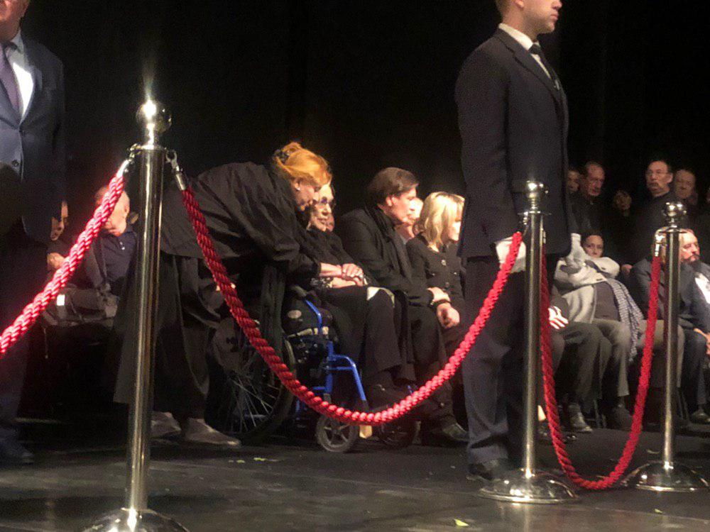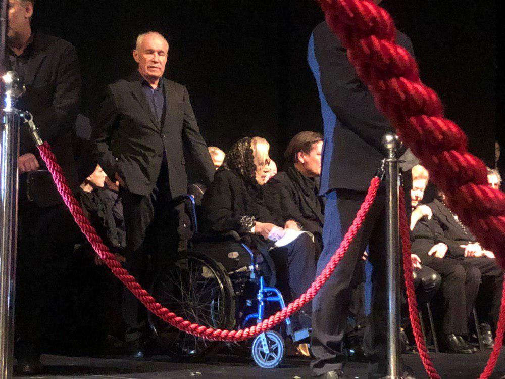 Тогда она появилась в инвалидкой коляске в сопровождении актера Сергея Гармаша (на фото стоит за ней).