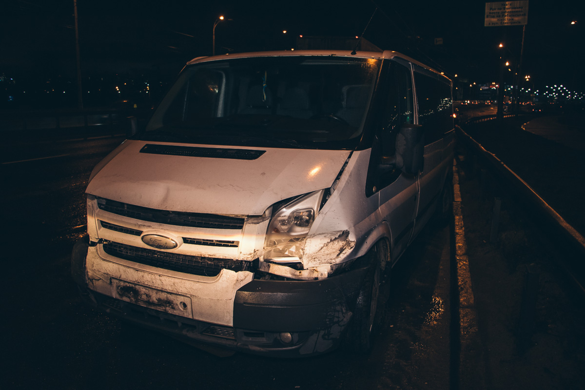 В ночь на 27 декабря в Киеве на Северном мосту Ford Transit двигался в сторону проспекта Степана Бандеры, но в машину врезалась пластина деформационного шва моста и Ford развернуло и выбросило в отбойник. Об этом сообщает Информатор.