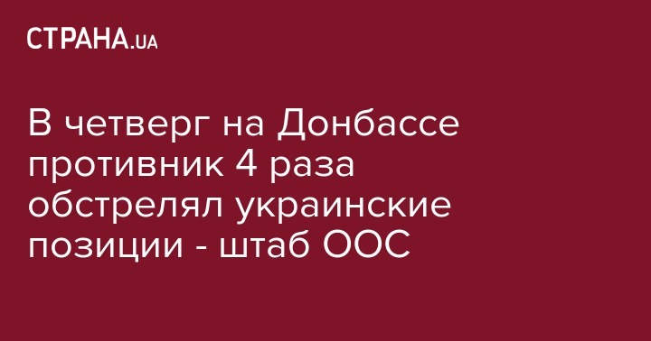 Противник 4 раза нарушил режим прекращения огня на Донбассе, украинские военнослужащие не пострадали. Об этом сообщает пресс-центр штаба операции Объединенных сил в Facebook в пятницу утром.
