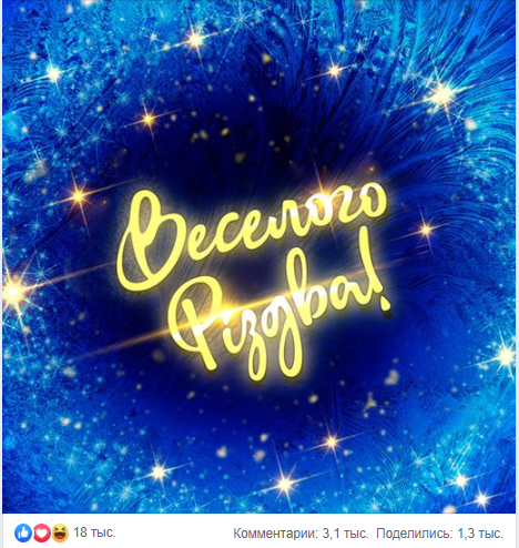 "Верю, что Христос рождается в сердце каждого из нас. И не только 25 декабря или 7 января, а ежедневно. Каждый раз, когда мы своими мыслями, словами и делами дарим друг другу любовь и тепло. Собравшись в Сочельник, поздравляя колядками - с сегодняшнего дня до Иордана - помним о тех, благодаря кому на большинстве территории Украины царит мир. О наших воинах-защитниках. Храни их Господь, и всю нашу Украину!