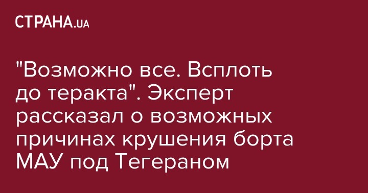 "Возможно все. Всплоть до теракта". Эксперт рассказал о возможных причинах крушения борта МАУ под Тегераном