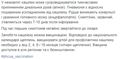 В целом в Украине за 11 месяцев 2019 года планово прививки против коклюша, дифтерии, столбняка (АКДС) получили 74% детей.