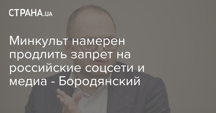 Глава Министерства культуры, молодежи и спорта Владимир Бородянский собирается инициировать продление запрета на доступ к российским медиа-ресурсам и социальным сетям.
