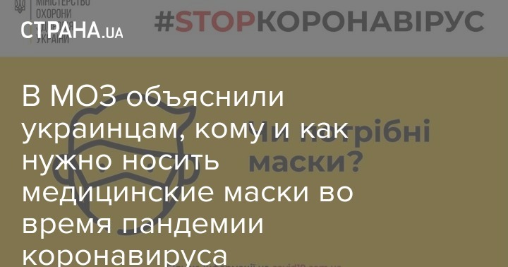 В МОЗ Украины объяснили украинцам кому и как нужно носить медицинские маски по время пандемии коронавируса.