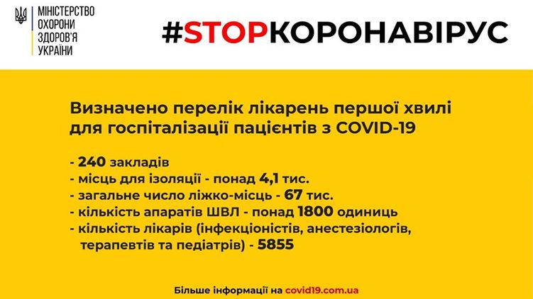 Главы областных государственных администраций, Министерство охраны здоровья и Национальная служба здоровья Украины здрава и НСЗУ определили перечень больниц первой волны для госпитализации пациентов с коронавирусной инфекцией COVID-19.