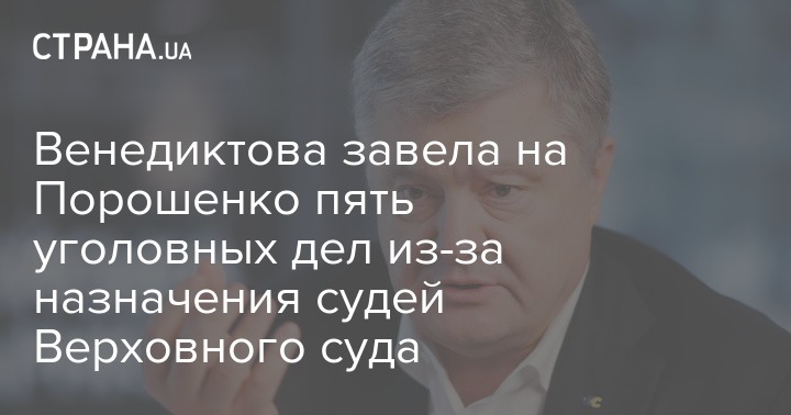 Генпрокурор Ирина Венедиктова открыла пять уголовных дел в отношении народного депутата и бывшего президента Петра Порошенко. Его подозревается в противоправных действиях при назначении судей Верховного суда в 2017 году.