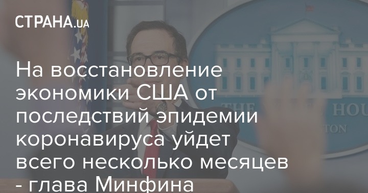 Министр финансов Соединенных Штатов Стивен Мнучин сообщил, что на восстановление экономики страны от эпидемии коронавируса может уйти всего несколько месяцев.