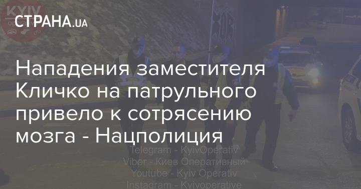 Патрульного госпитализировали с диагнозом: ушиб мягких тканей лица и сотрясение мозга. Фото: facebook.com/KyivOperativ