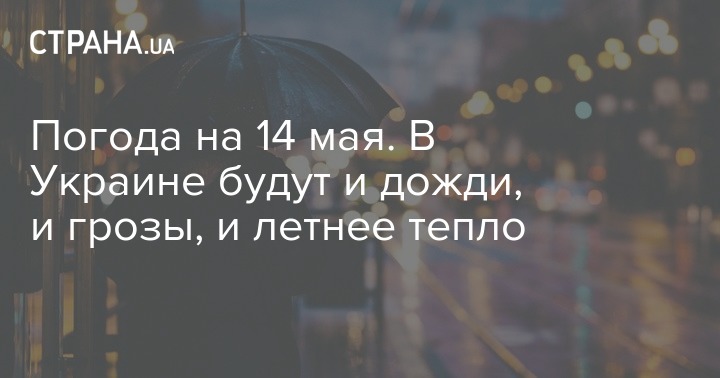 По словам Диденко, 14 мая на Севере и Западе страны вновь польют дожди. В том числе заденет Винницкую и Одесскую области. Кроме того, не исключено проявление грозы. Порывы ветра в большинстве областей ожидаются юго-западные.