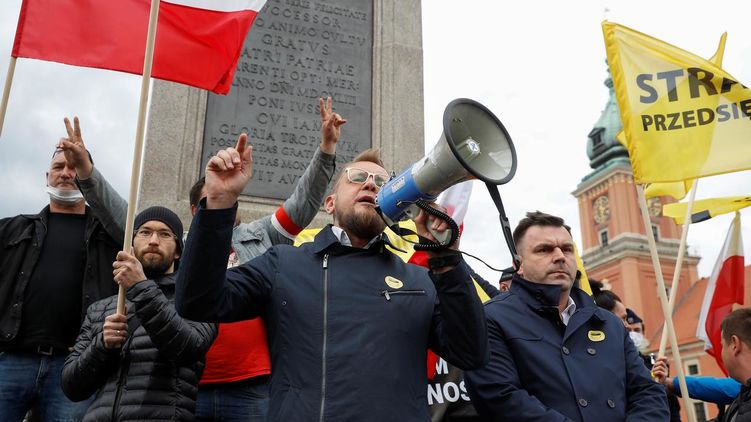 Сотни людей собрались в Старом городе Варшавы и потребовали от правительства ускорить процесс выхода из карантина и позволить предприятиям возобновить работу. В руках активисты держали плакаты с надписями "Работа и хлеб", а также "Снова будет нормально".