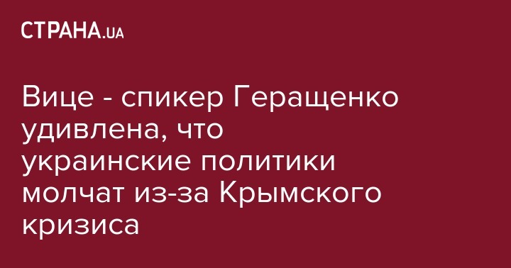 Первый зампредседателя Верховной Рады, представитель Украины в трехсторонней контактной группе в Минске Ирина Геращенко заявила, что политики должны публично поддержать позицию президента по Крыму. Об этом она сообщила в Facebook.