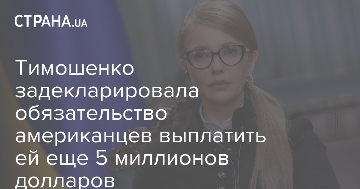 Кроме того, Юлия Тимошенко также задекларировала обязательство компании Reid Collins & Tsai (США) выплатить ей 5 491 489 долларов компенсации за политические репрессии 2011-2014 годов.