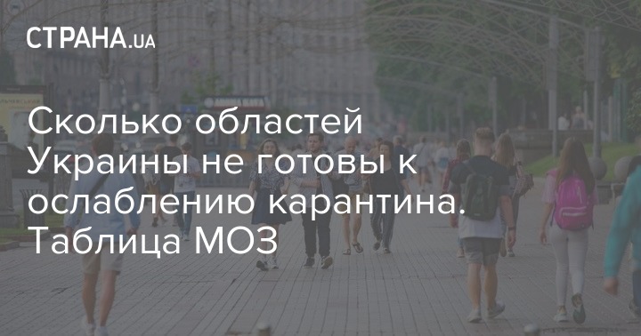 По состоянию на воскресенье, 28 июня, к ослаблению карантина в Украине не готовы 11 регионов страны, а также столица - Киев. Они не соответствуют всем необходимым критериям для ослабления противоэпидемических мер. Кроме того, нет данных из ОРДЛО и оккупированного Крыма.