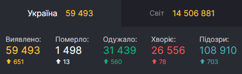 Данные на утро 20 июля. В Украине за сутки еще 651 человек заразился Covid-19