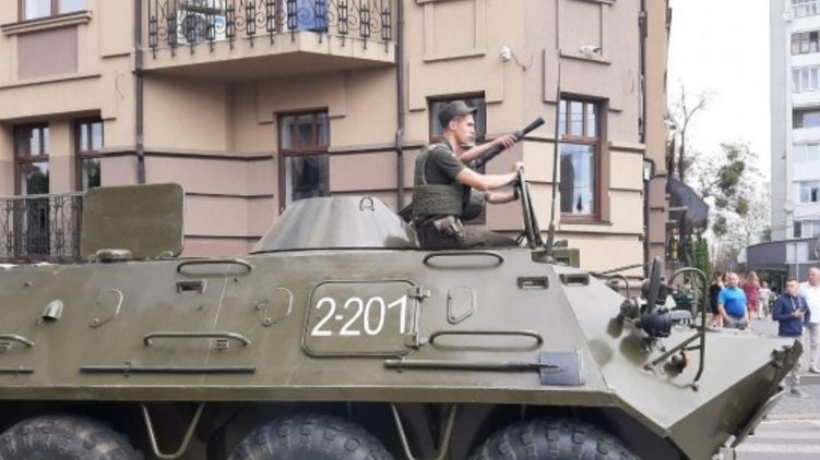 В связи с захватом автобуса в Луцке в центр города начали стягивать военную технику, в частности, бронированные транспортно-боевые машины (БТР).