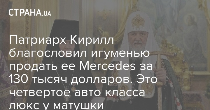 Патриарх Русской православной церкви Кирилл благословил настоятельницу Покровского монастыря Москвы игуменью Феофанию продать свой автомобиль Mercedes Benz S-класса за 9 500 000 рублей (около 130 000 долларов — Ред.).