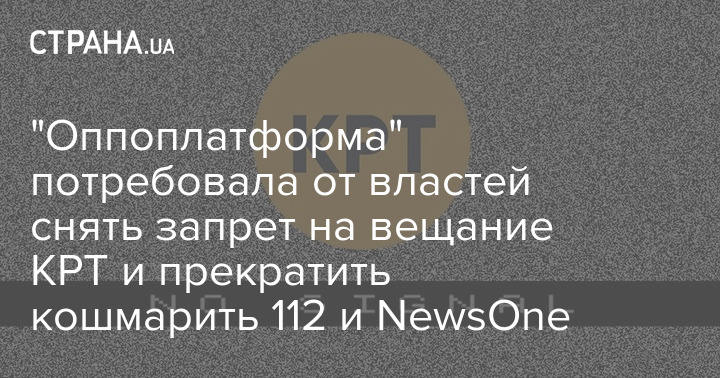 В связи с этим в "Оппоплатформе" потребовали от власти прекратить бюрократический произвол Нацсовета по телевидению и радиовещанию, а также остановить чиновничье проверки СМИ, которые активизировались перед выборами. Также политсила требует снять запрет на вещание КРТ и остановить административное давление на телеканалы "112 Украина", "NewsOne" и другие независимые СМИ.