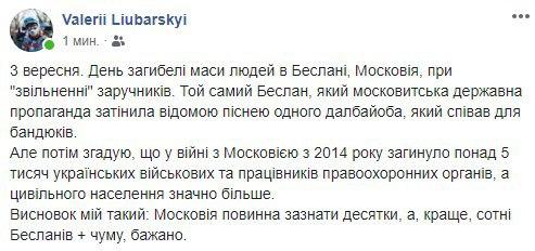 Другие украинские пользователи выдвинули версию, что 3 сентября - это "изобретение российской пропаганды", которая, мол, пытается таким образом замолчать годовщину трагедии в Беслане.