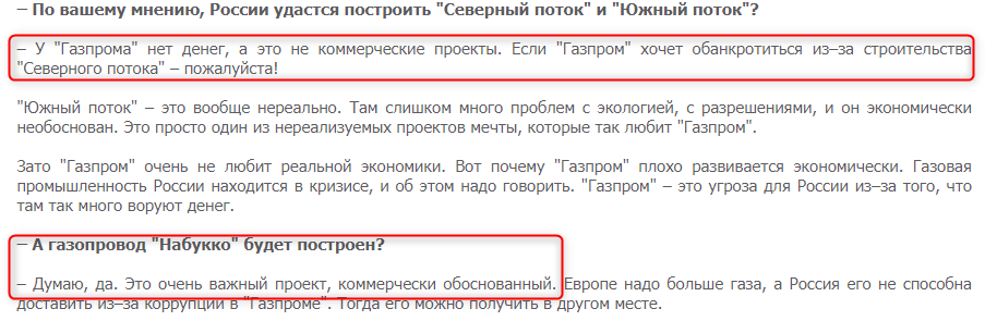 В 2009 году Аслунд в интервью "Украинской правде" предрекал достройку газопровода "Набукко" из Средней Азии в Европу. Эта труба лоббировалась американцами, как инструмент снижения влияния России в Азербайджане и Туркмении.