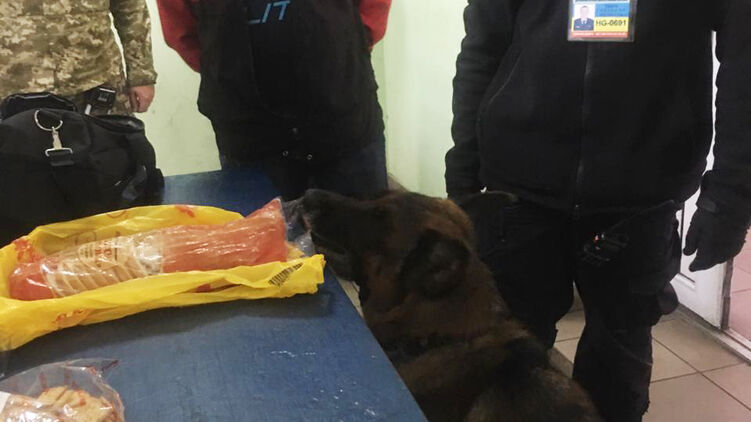 Собака унюхала запрещенные вещества, спрятанные в батоне. Фото: Госпогранслужба Украины
