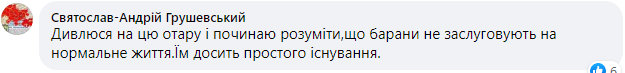 "Смотрю на стадо и начинаю понимать, что бараны не заслуживают нормальной жизни. Им достаточно простого существования", - рассуждает в комментариях у волонтерши боец батальона "Донбасс" Святослав Грушевский.