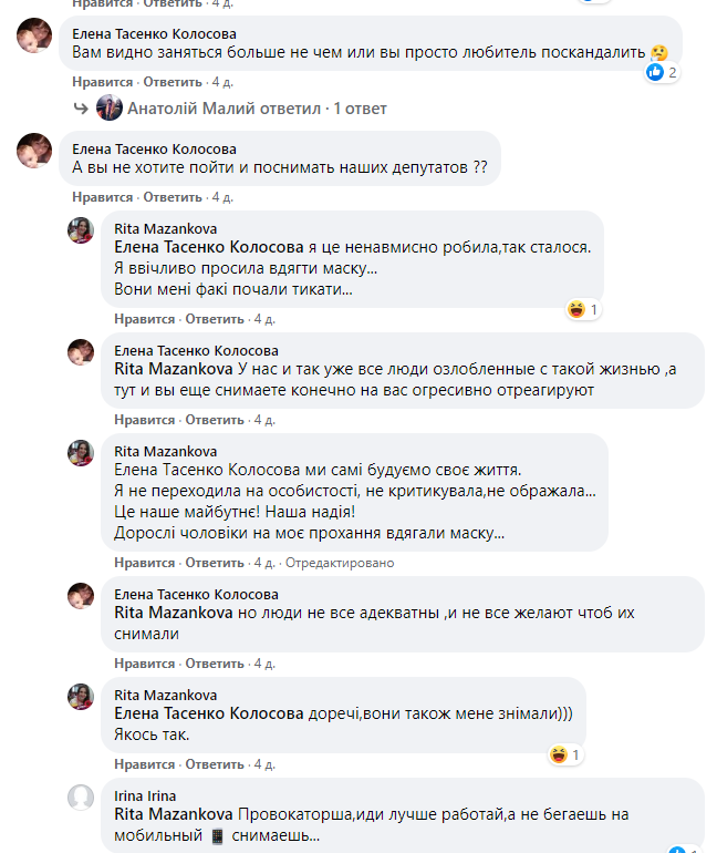 Активисткой, которая поспорила с маршрутке, оказалась местная жительница Рита Мазанкова. Она волонтер АТО и, судя по фотографиям на Facebook, сторонница Петра Порошенко. "Страна" нашла ее аккаунт в соцсетях.