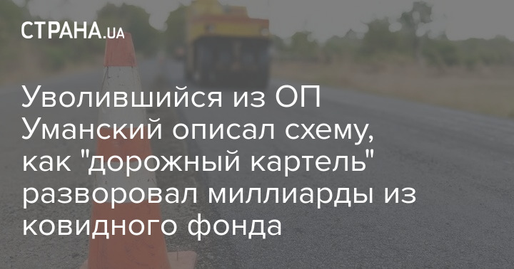 Экс-советник главы Офиса президента Игорь Уманский, который ранее подал в отставку, сообщил, что деньги из "коронавирусного фонда", выделенные на дорожное строительство, были присвоены шестью компаниями, которые регулярно выигрывают тендеры по программе "Большого строительства".