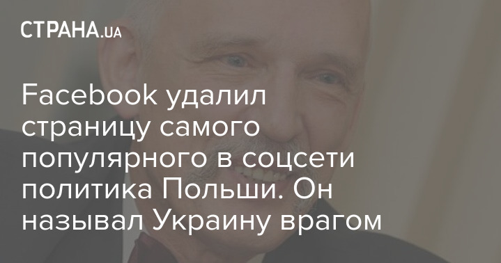 Социальная сеть Facebook удалила страницу депутата парламента Польши Януша Корвина-Микке. 77-летний политик является главой ультраправой партии "Конфедерация", которая прошла в Сейм на прошлогодних выборах.