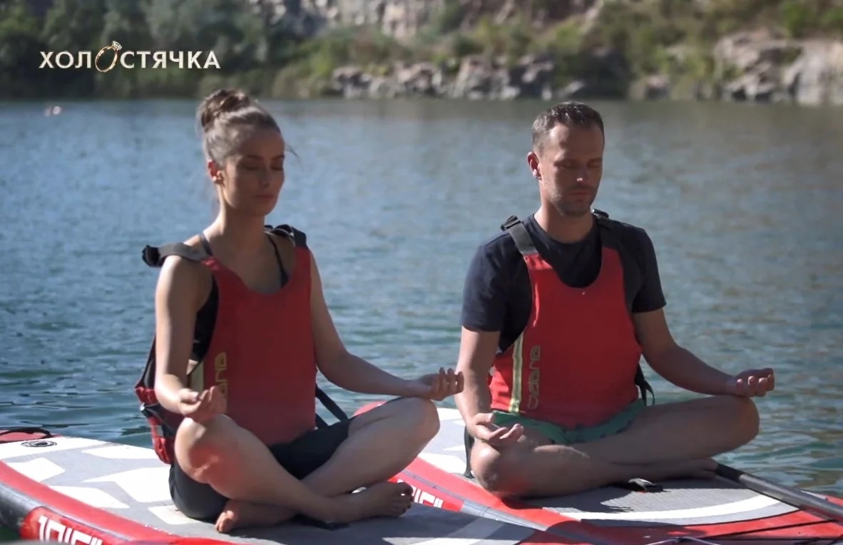 Так, с Евгением Ковтуненко Холостячка погрузилась в глубокую медитацию на сапах посреди озера. Кстати, именно Радоновое озеро Мигии Николаевской области принято называть украинской Швейцарией за здешние пейзажи.