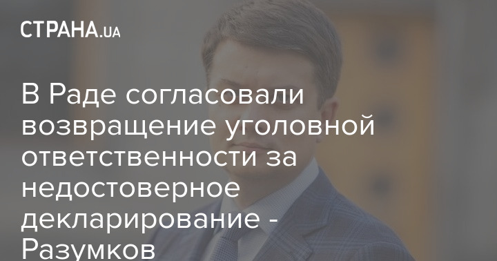 Председатель Верховной Рады Разумков заявил, что в парламенте согласовали возвращение уголовной ответственности за недостоверное декларирование. По его словам, уже было проведено пять заседаний по теме разрешения кризиса, который сложился между антикоррупционными органами и КСУ.