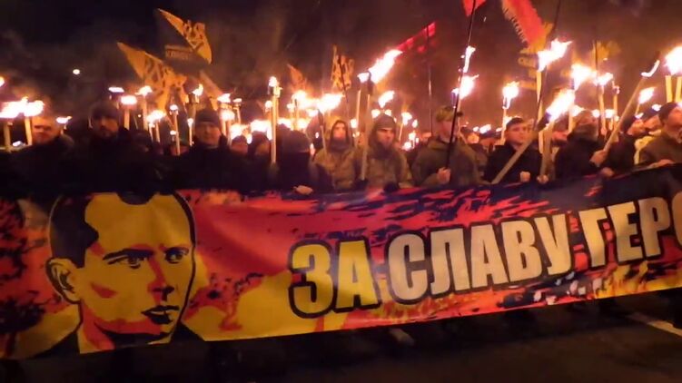 Алексей Янковский участвовал в марше националистов в честь Бандеры, фото: скриншот