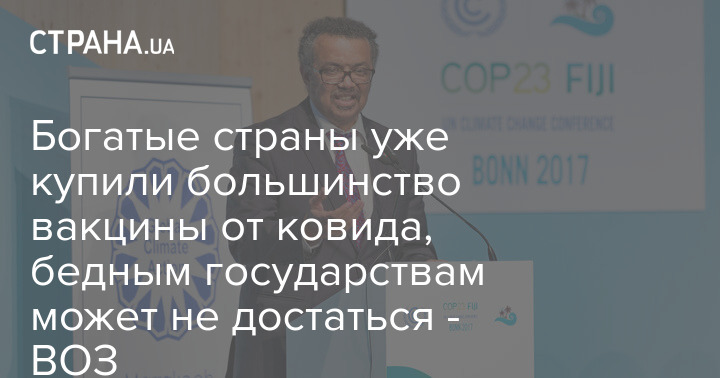 Генеральный директор Всемирной организации здравоохранения Тедрос Адханом Гебрейесус озабочен вакцинным национализмом. По данным ВОЗ, подавляющее большинство стран, где начали прививать от коронавируса, - это богатые державы. Они же законтрактовали и большую часть поставок препаратов.