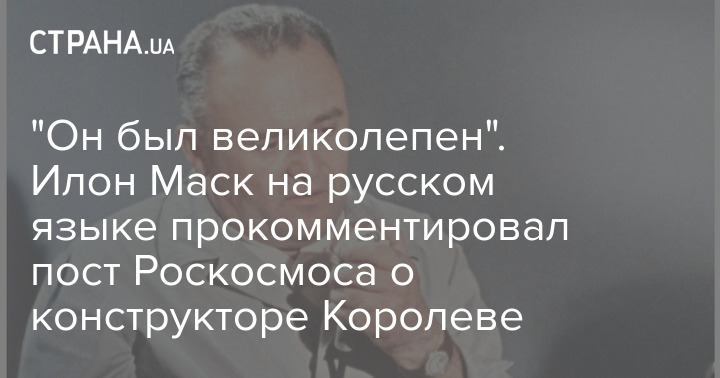 Основатель компании электромобилей Tesla и космической техники SpaceX Илон Маск назвал великолепным выходца из Украины Сергея Королева, который открыл человечеству дорогу в космос. Таким образом он отреагировал на пост Роскосмоса по случаю 114-й годовщины со дня рождения великого конструктора и руководителя космической программы СССР.