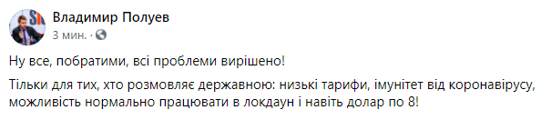 12:38  Телеведущий Владимир Полуев шутит, что для тех, кто перешел на украинский язык, теперь все экономические проблемы решены.