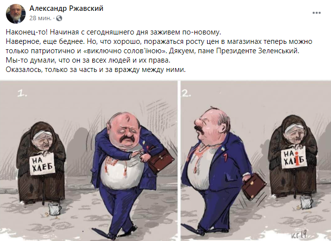 10:23  Экс-нардеп Александр Ржавский пишет, что отныне возмущаться ростом цен в магазинах можно только на государственном языке.